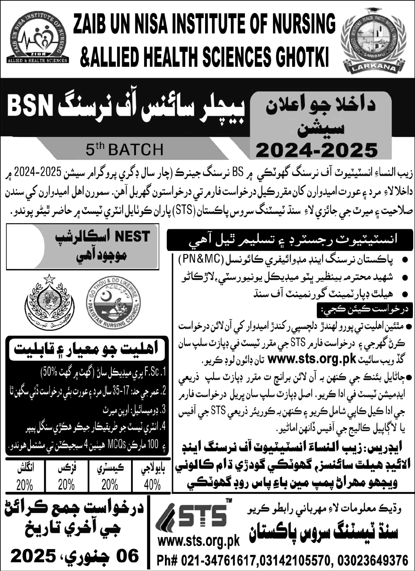 Click the below link to Apply for Admission in Zaib-un-Nisa Institute of Nursing & Allied Health Sciences, Ghotki
