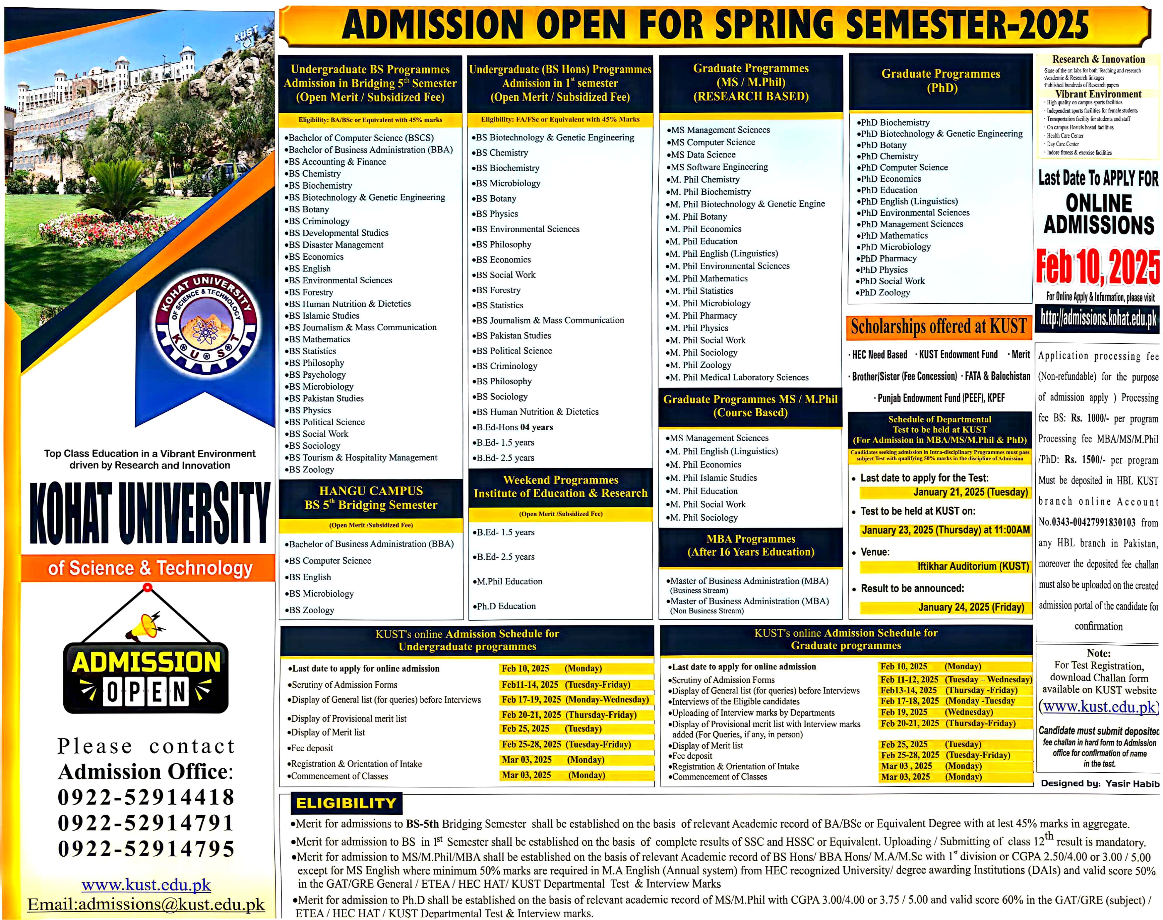 Click the below link to Apply for Admission in Kohat University of Science & Technology (KUST), Hangu Campus