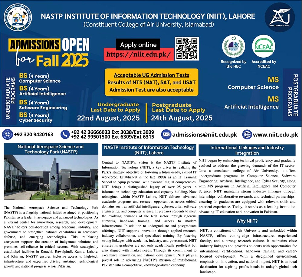 NASTP Institute of Information Technology, Lahore Undergraduate Admissions Fall 2025