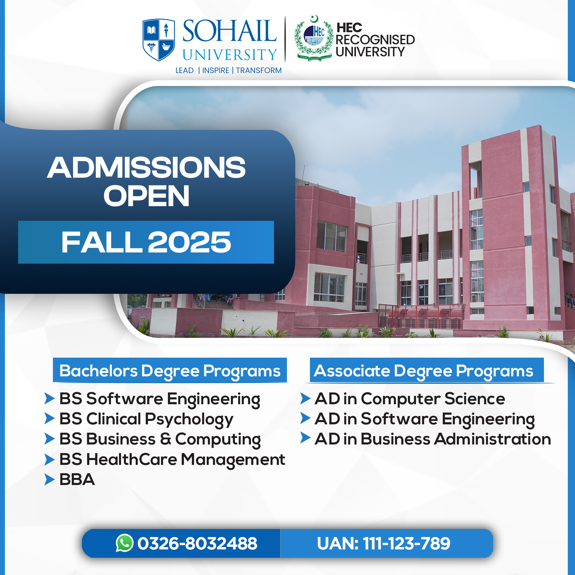 Sohail University, Karachi BS & ADP Programs Admissions Fall 2025