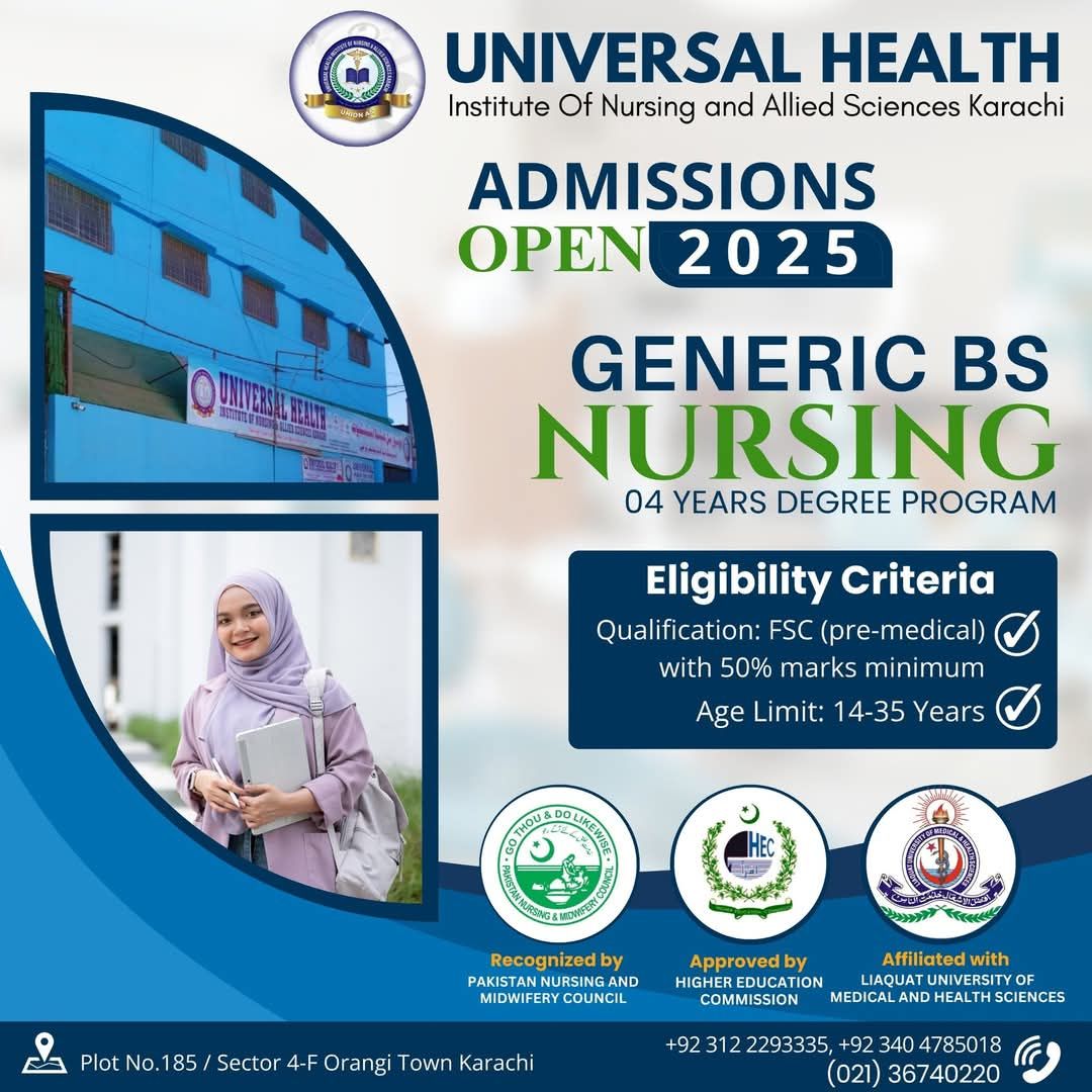 Universal Health Institute of Nursing & Allied Sciences, Karachi BS Nursing Admissions 2025