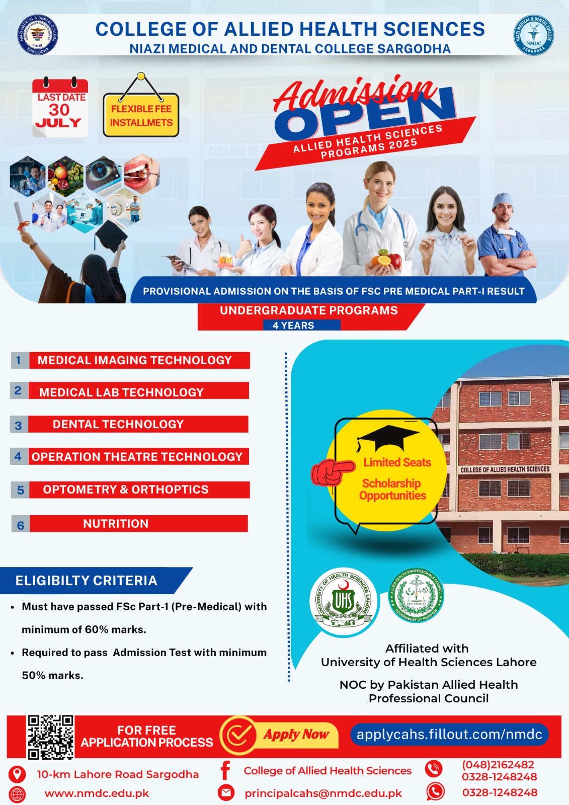 College of Allied Health Sciences, Niazi Medical & Dental College (NMDC), Sargodha Admissions Open
