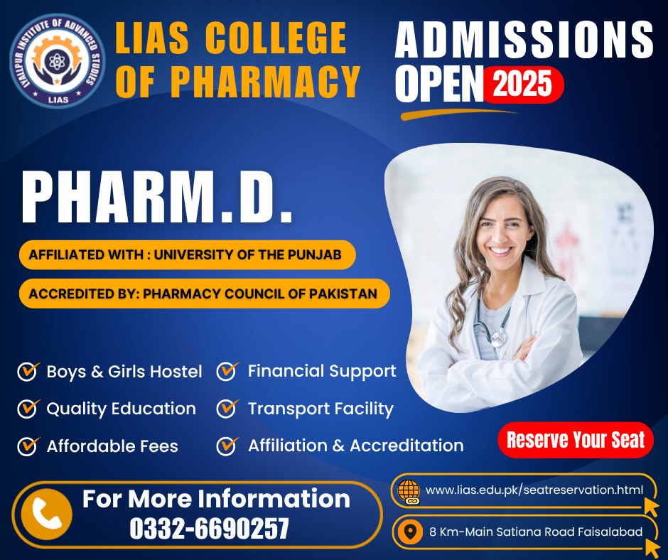LIAS College of Pharmacy, Faisalabad Pharm-D Admissions 2025