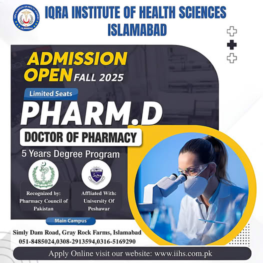 Iqra Institute of Health Sciences, Islamabad Doctor of Pharmacy Admissions Fall 2025