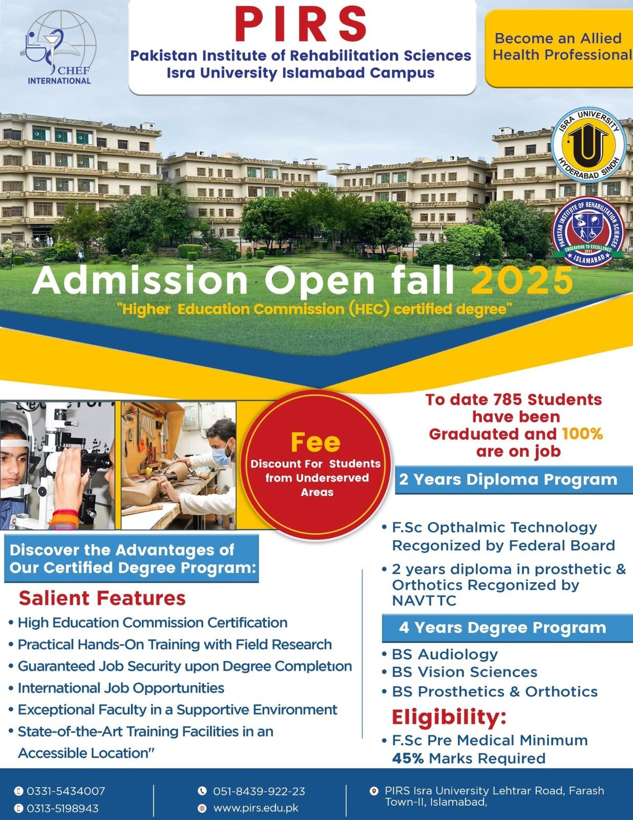 Pakistan Institute of Rehabilitation Sciences (PIRS) Isra University, Islamabad Campus Admissions Fall 2025