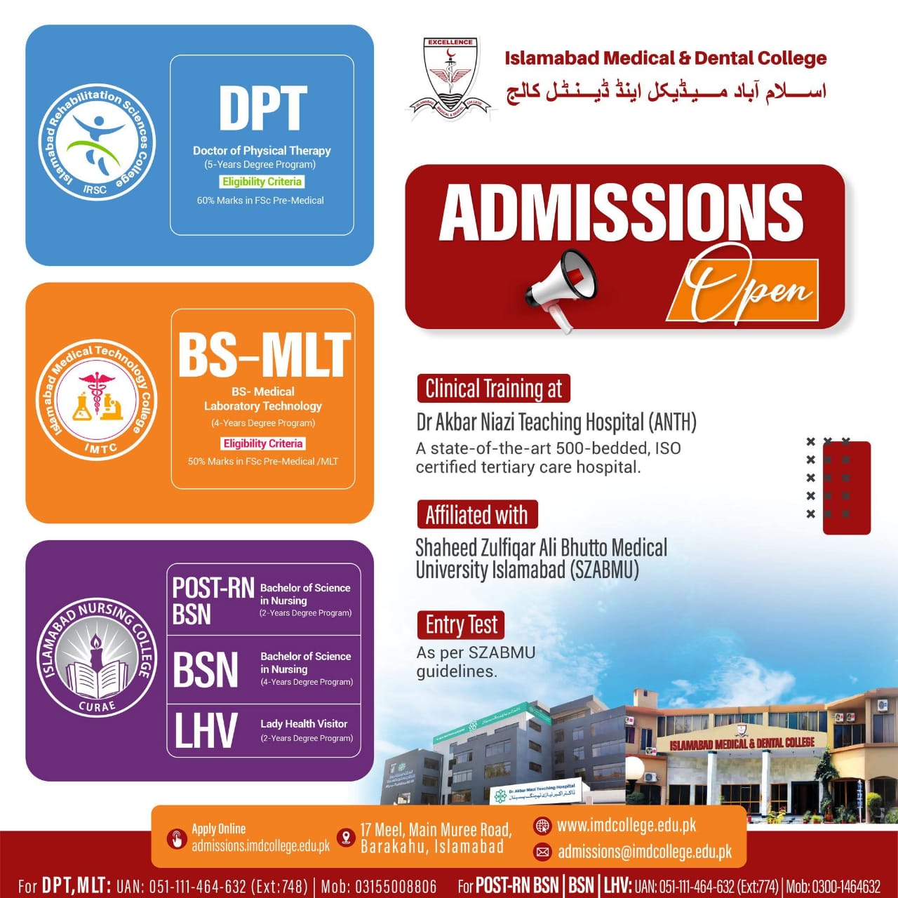 Islamabad Medical & Dental College (IMDC), Islamabad Admissions Open