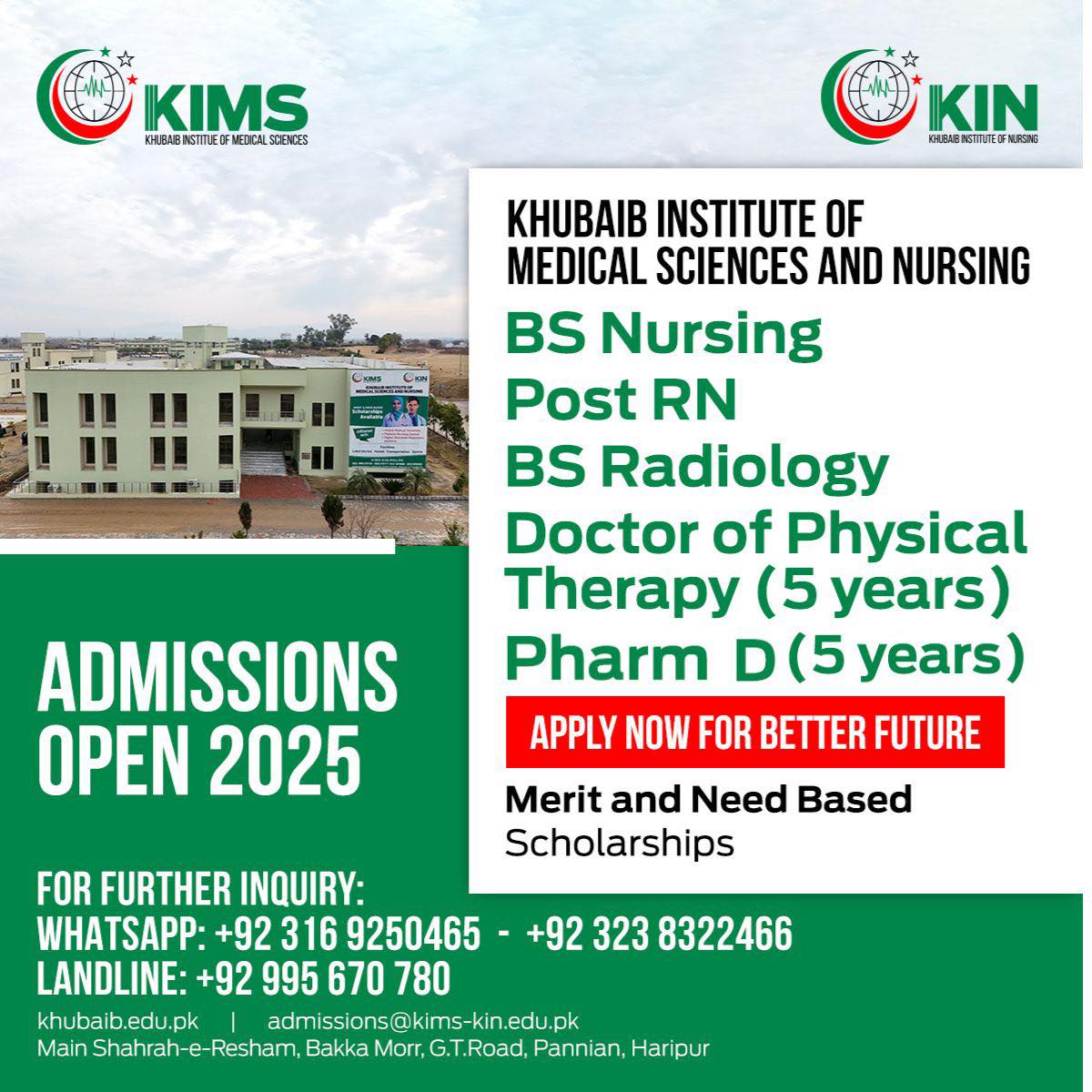 Khubaib Institute of Medical Sciences & Nursing, Haripur Admissions 2025-26
