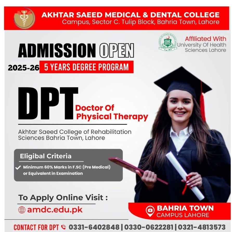 Akhtar Saeed Medical & Dental College, Lahore DPT Admissions 2025-26
