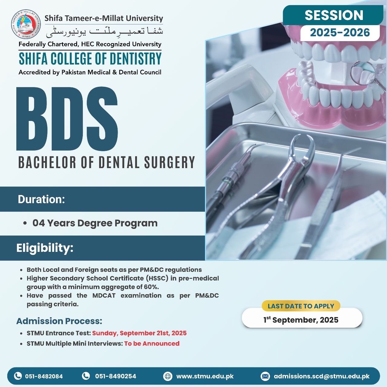 Shifa College of Dentistry, Islamabad BDS Admissions Session 2025-26