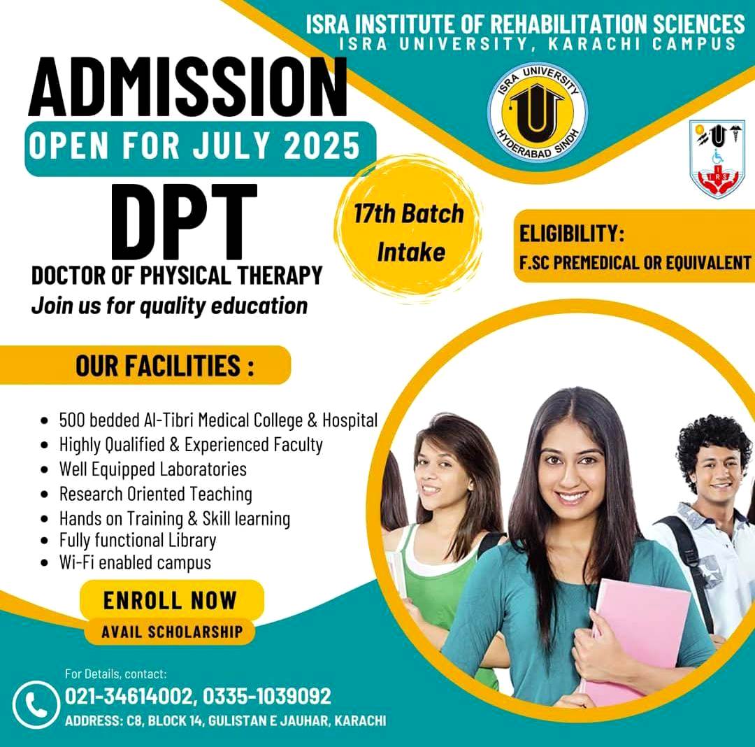 Isra Institute of Rehabilitation Sciences, Karachi DPT Admissions Fall 2025