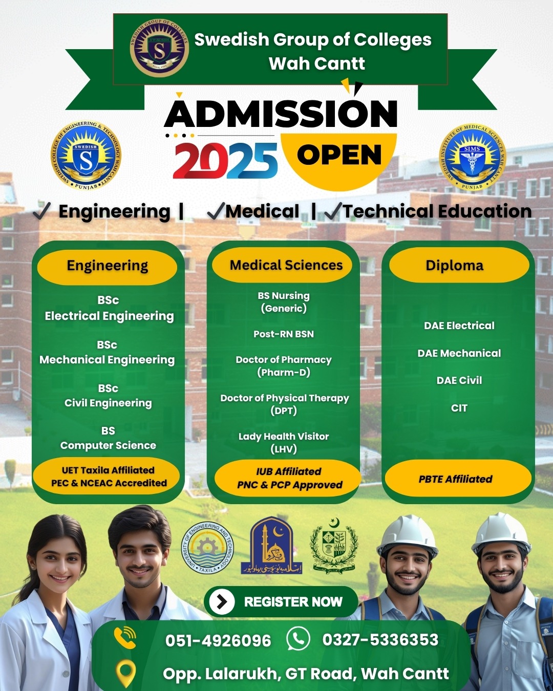 Click the below link to Apply for Admission in Swedish Group of Colleges, Wah Cantt.