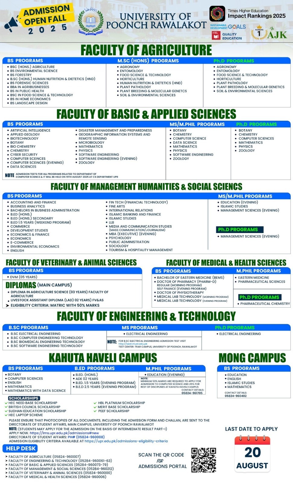 University of Poonch, Kahuta Haveli Campus Admissions Fall 2025