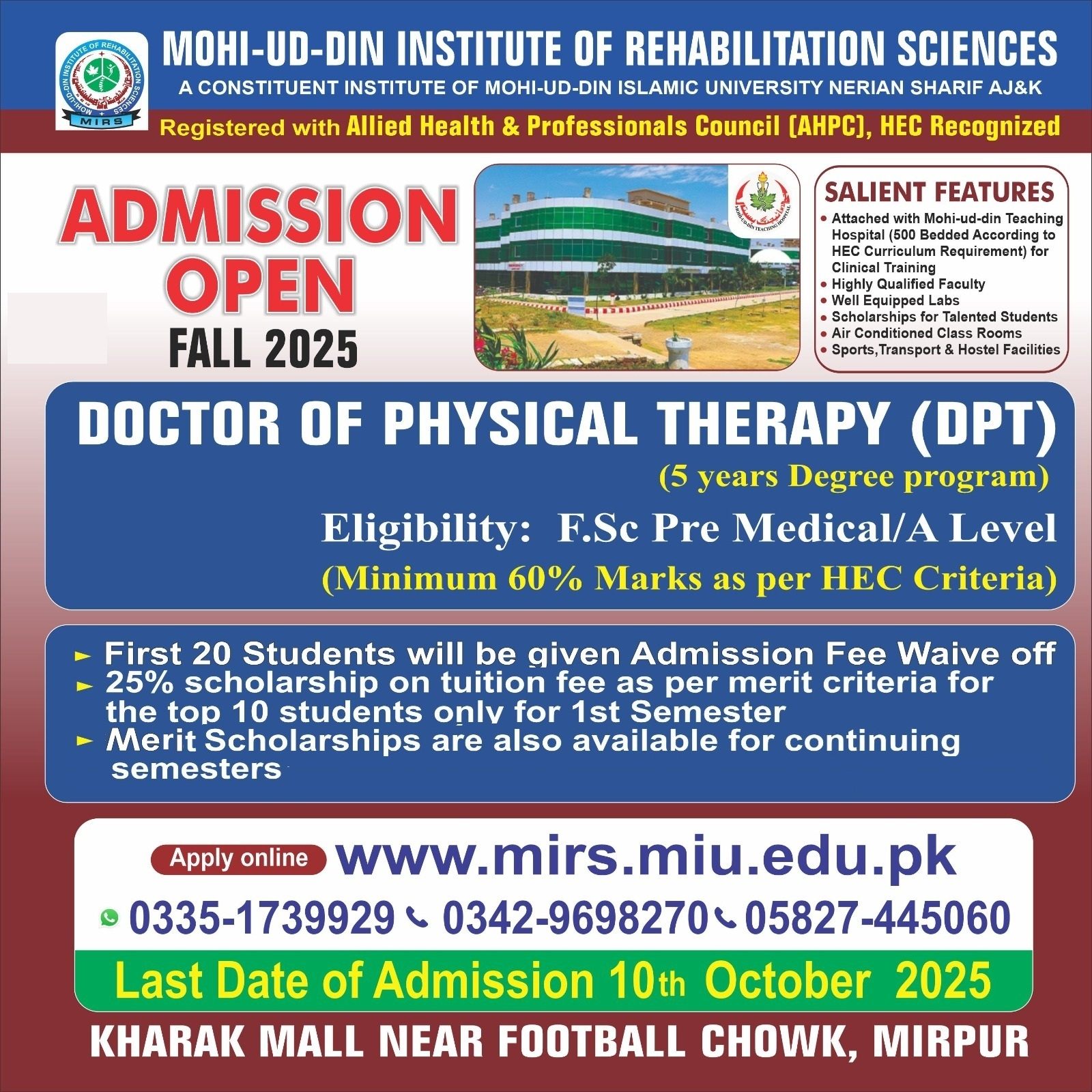 Mohi-ud-Din Institute of Rehabilitation Sciences, Mirpur AJK Admissions Fall 2025