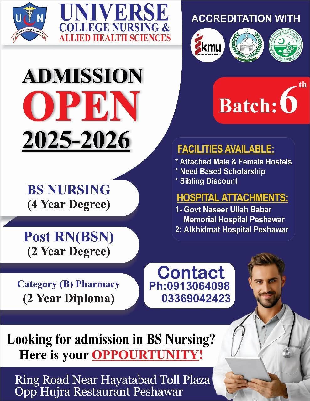 Universe College of Nursing & Allied Health Sciences, Peshawar Nursing Admissions Fall 2025 (Batch-26)