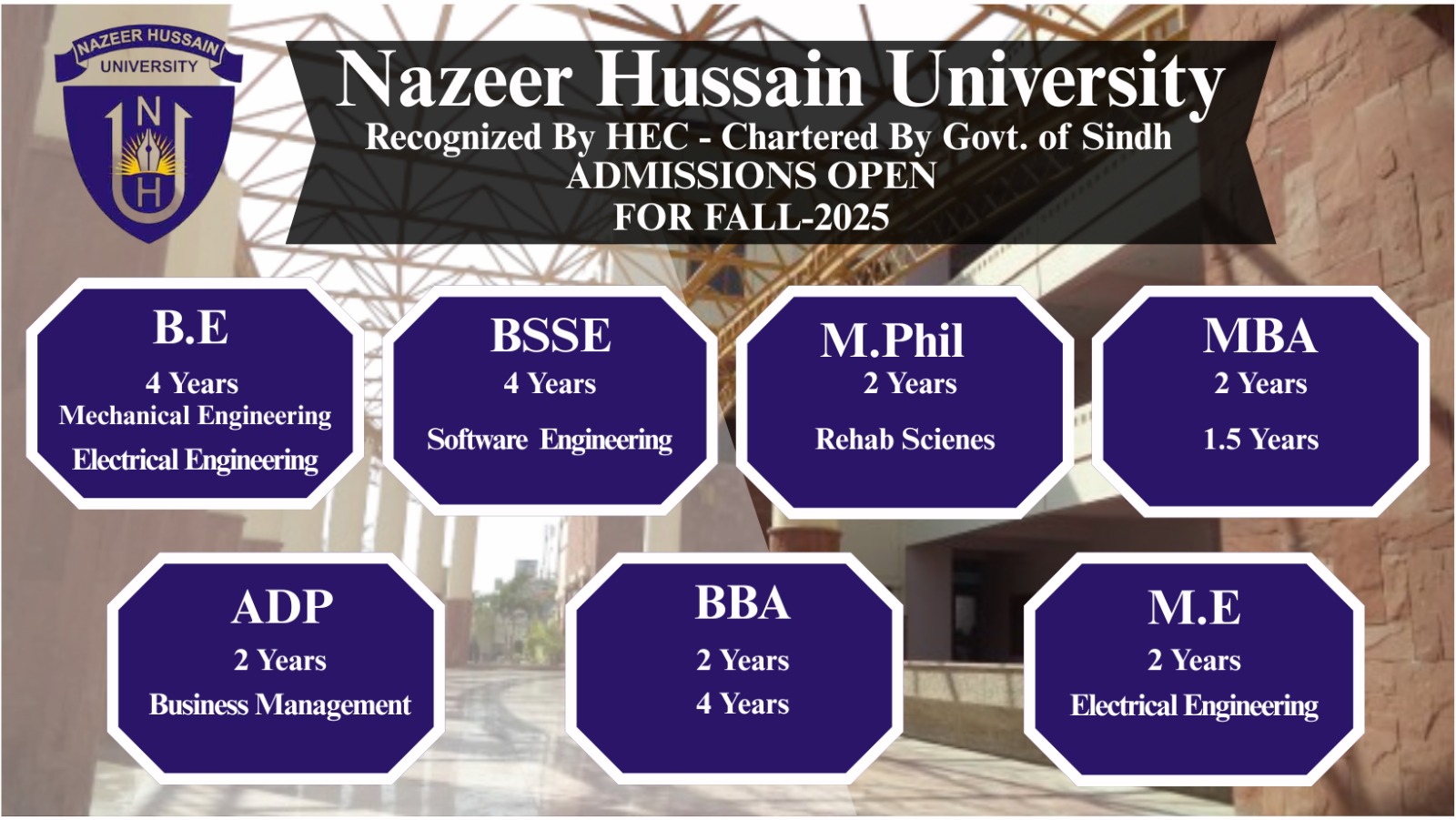 Nazeer Hussain University (NHU), Karachi Admissions Fall 2025