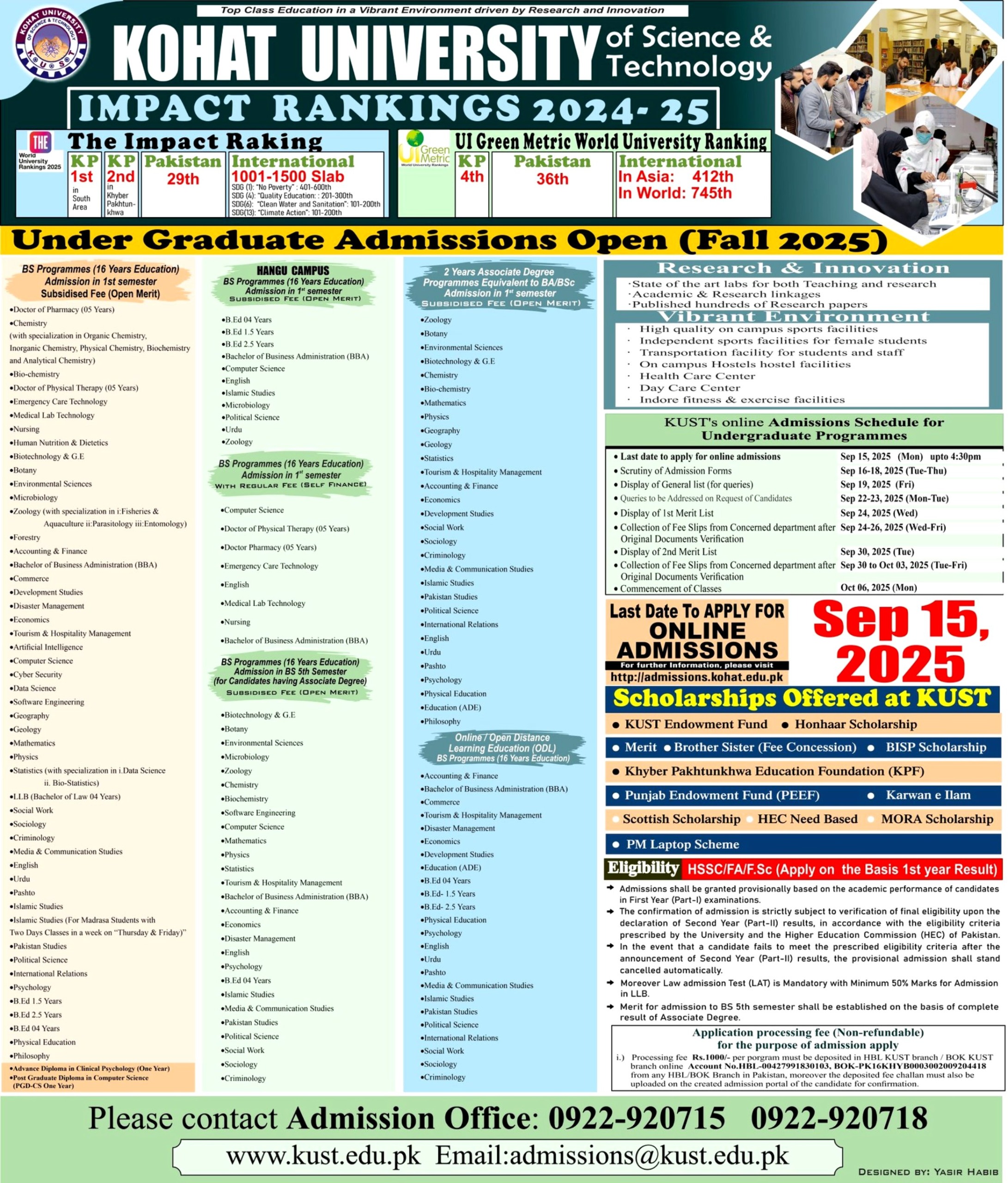 Kohat University of Science & Technology (KUST), Hangu Camus Undergraduate Admissions Fall 2025
