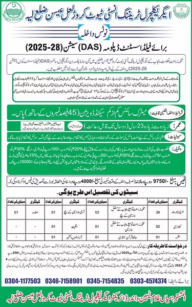 Agricultural Training Institute, Karor Lal Eason Layyah Diploma in Agricultural Sciences (DAS) Admissions Session 2025-28
