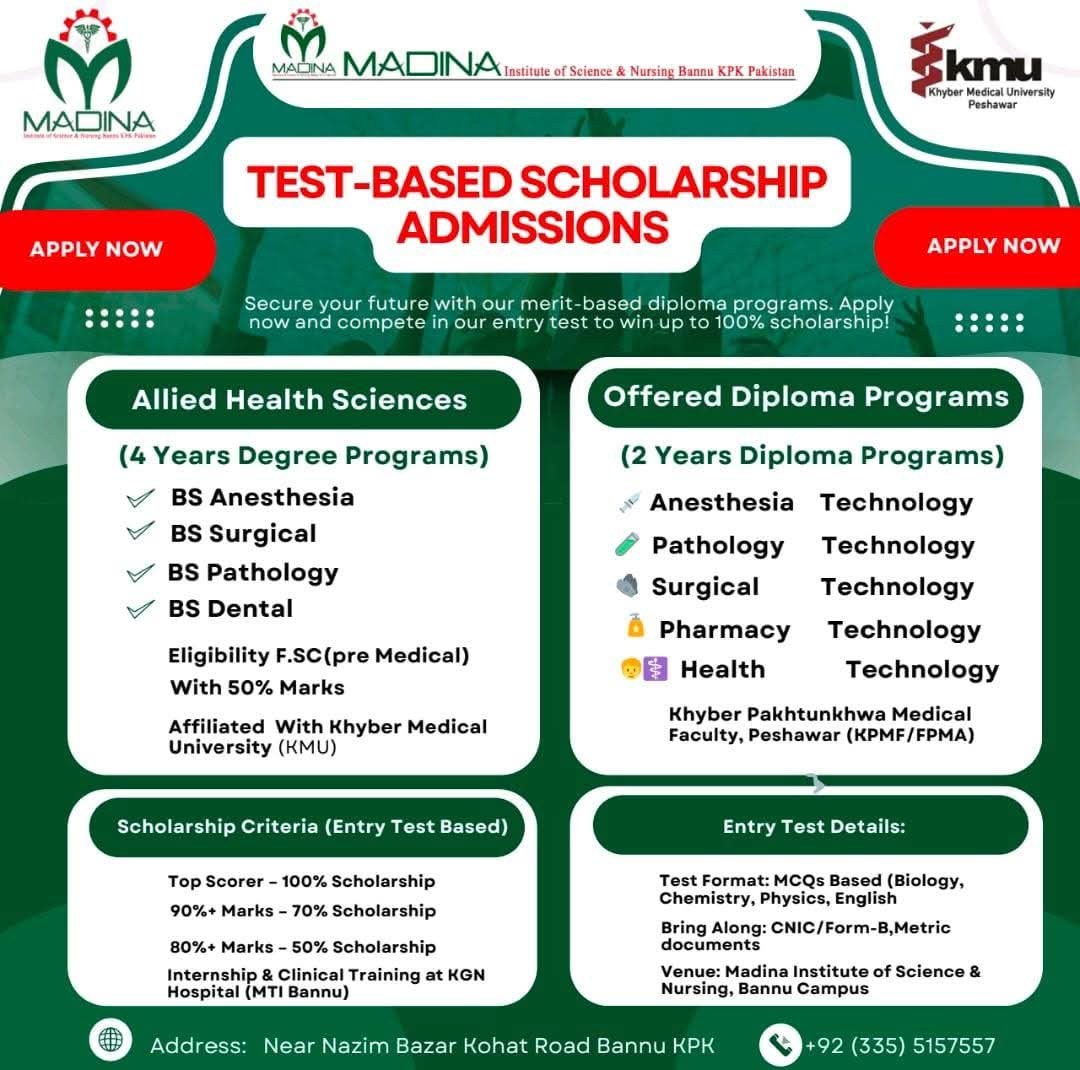 Madina Institute of Science & Technology (MISAT), Bannu Test Based Scholarship for BS & Diploma Programs Admissions 2025