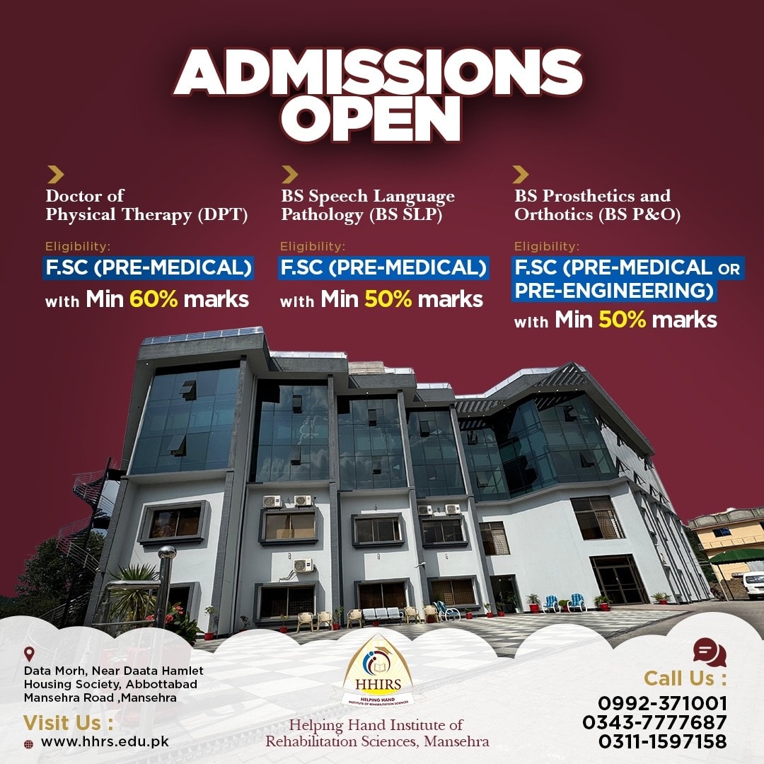 Helping Hand Institute of Rehabilitation Sciences, Mansehra Admissions Open