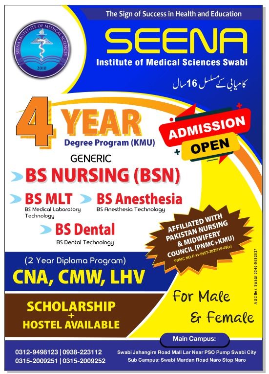 Seena institute of Medical Sciences, Swabi BS & Diploma Programs Admissions 2025