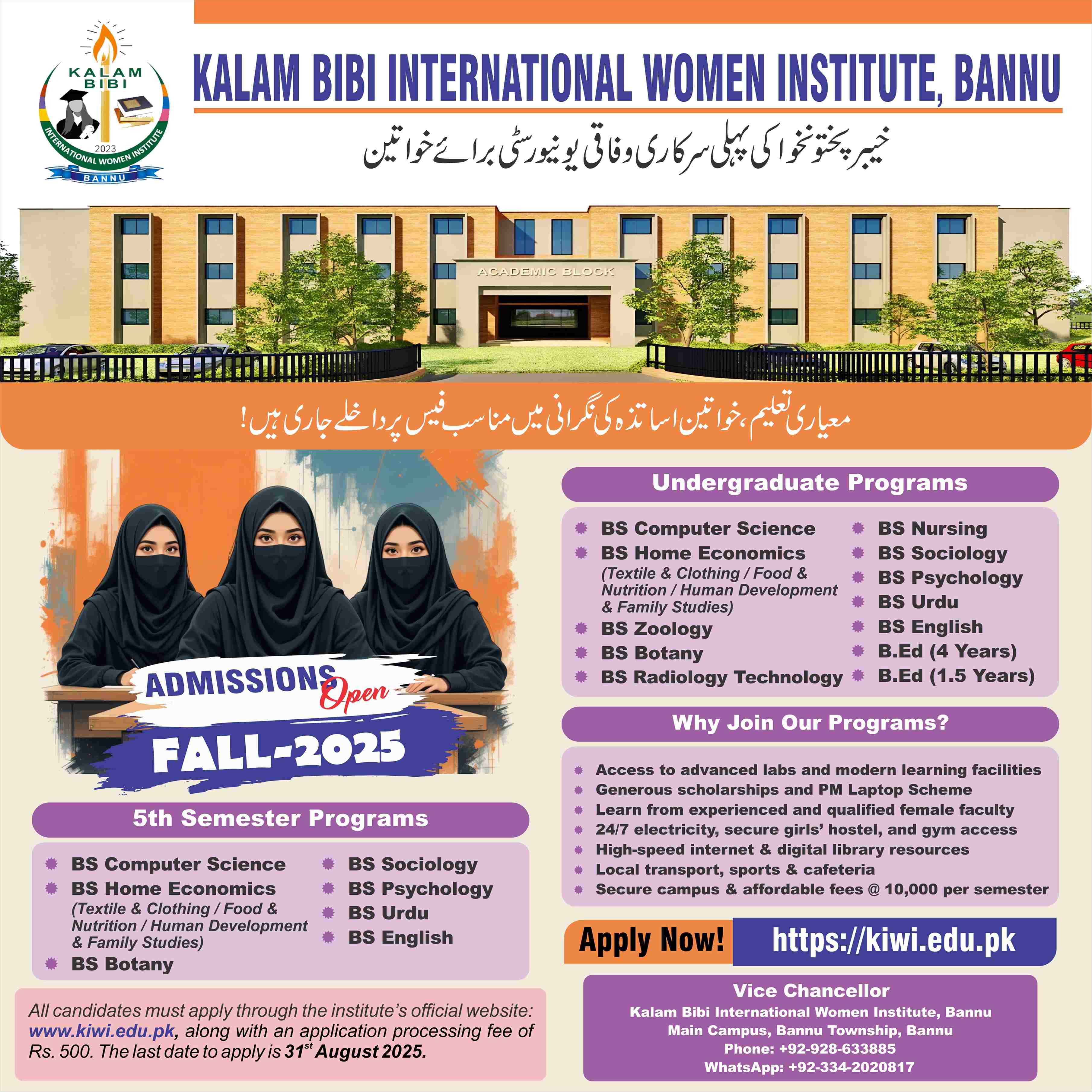 Kalam Bibi International Women Institute, Bannu Admissions Fall 2025