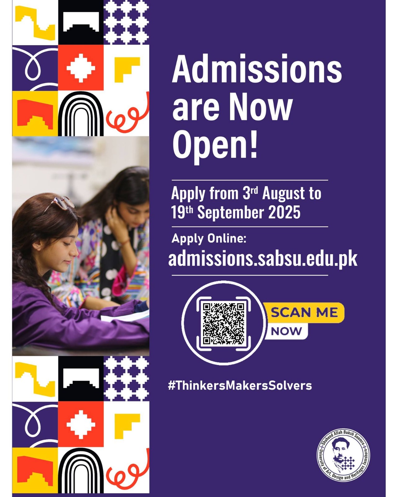 Click the below link to Apply for Admission in Shaheed Allah Buksh Soomro University of Art, Design & Heritages, Jamshoro