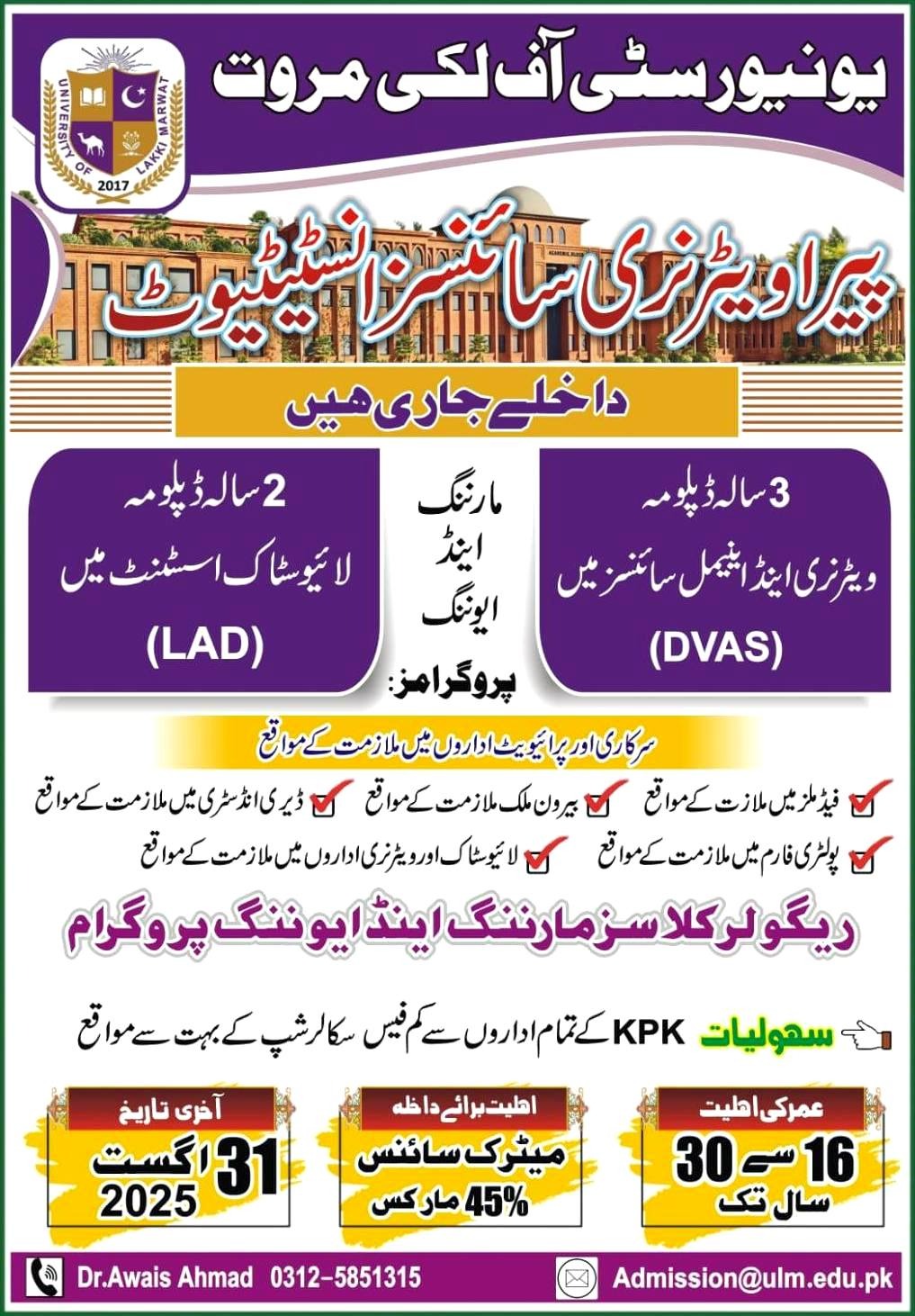 University of Lakki Marwat (ULM), Lakki Marwat Diploma Programs Admissions 2025