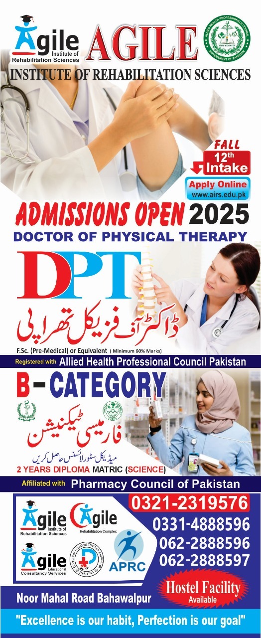Agile Institute of Rehabilitation Sciences, Bhawalpur DPT Admissions Fall 2025