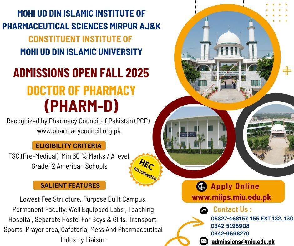 Mohi-ud-Din Institute of Pharmaceutical Sciences, Mirpur AJK Pharm-D Admissions Fall 2025