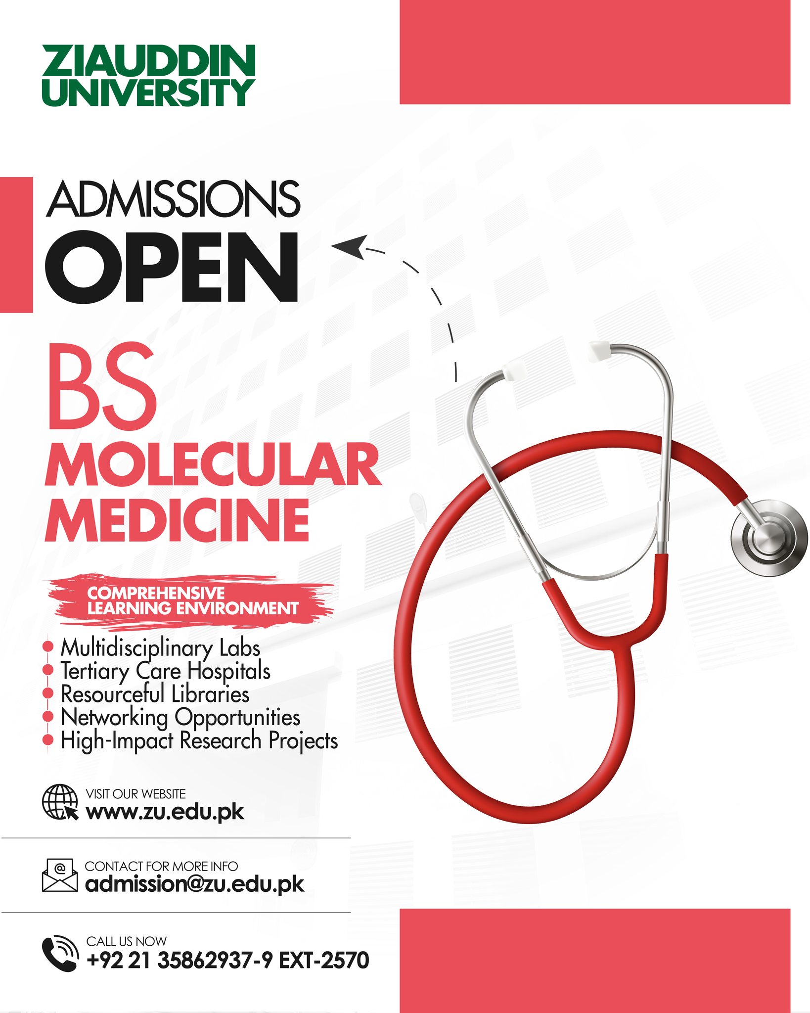 Ziauddin University, Karachi BS Molecular Medicine Admissions Session 2025