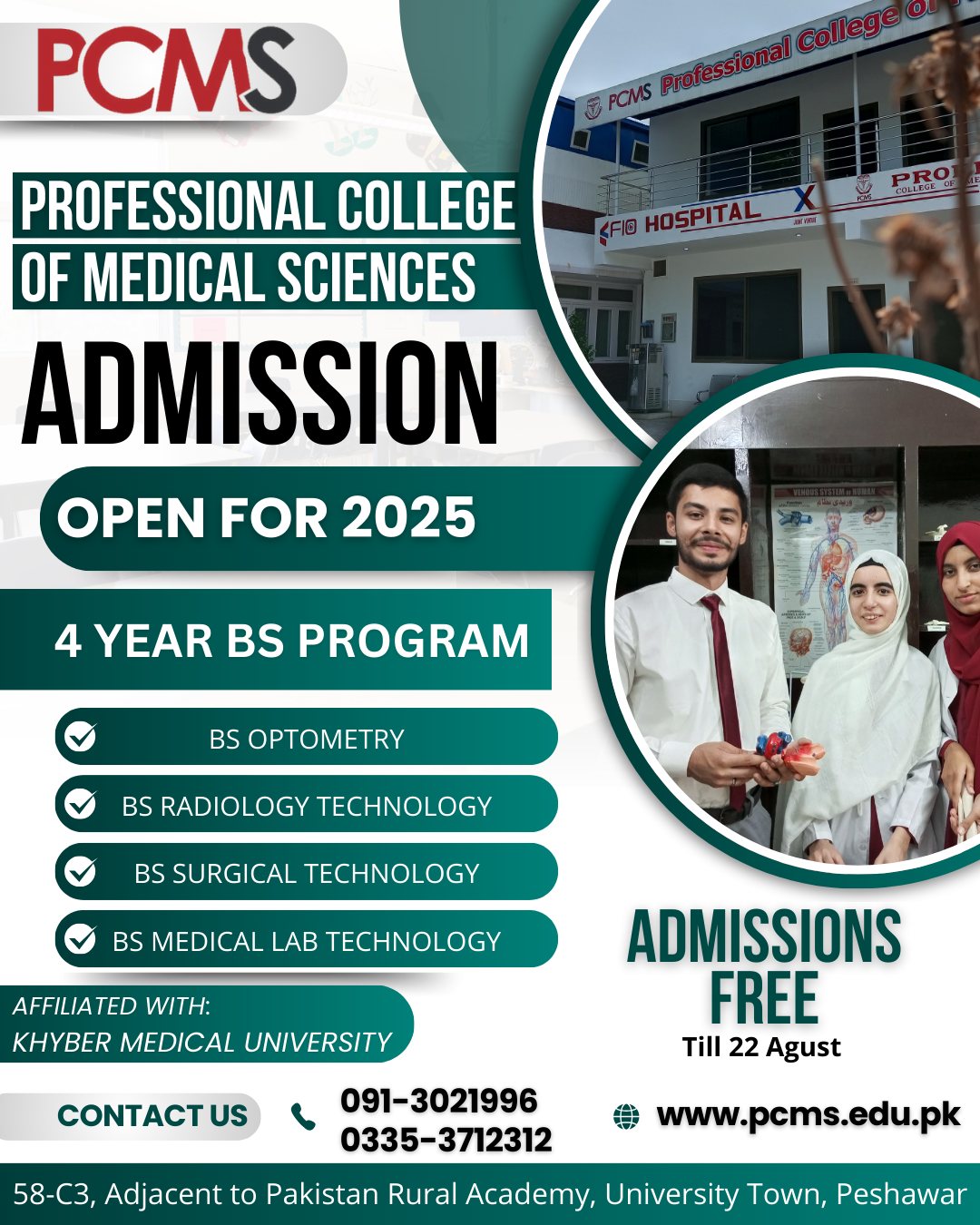 Professional College of Medical Sciences (PCMS), Peshawar Admissions Session 2025-26