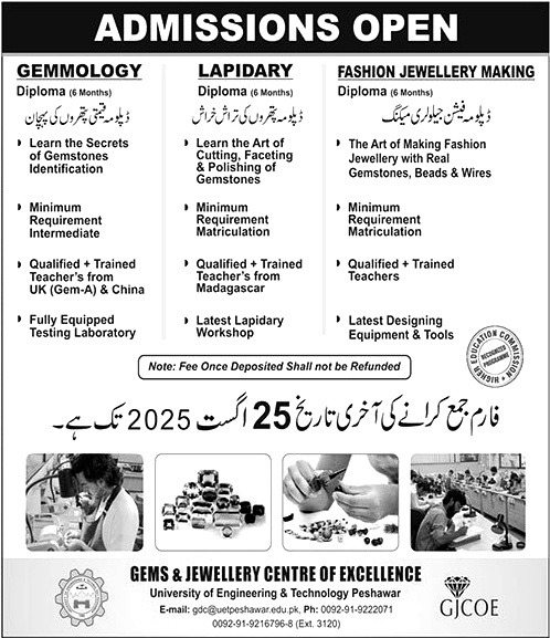 Gems & Jewelry Centre of Excellence (GJCOE), Peshawar Diploma Programs Admissions 2025